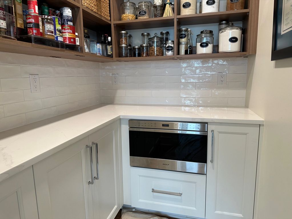 Painted cabinets, updated backsplash and countertops, installed stove hood/venting